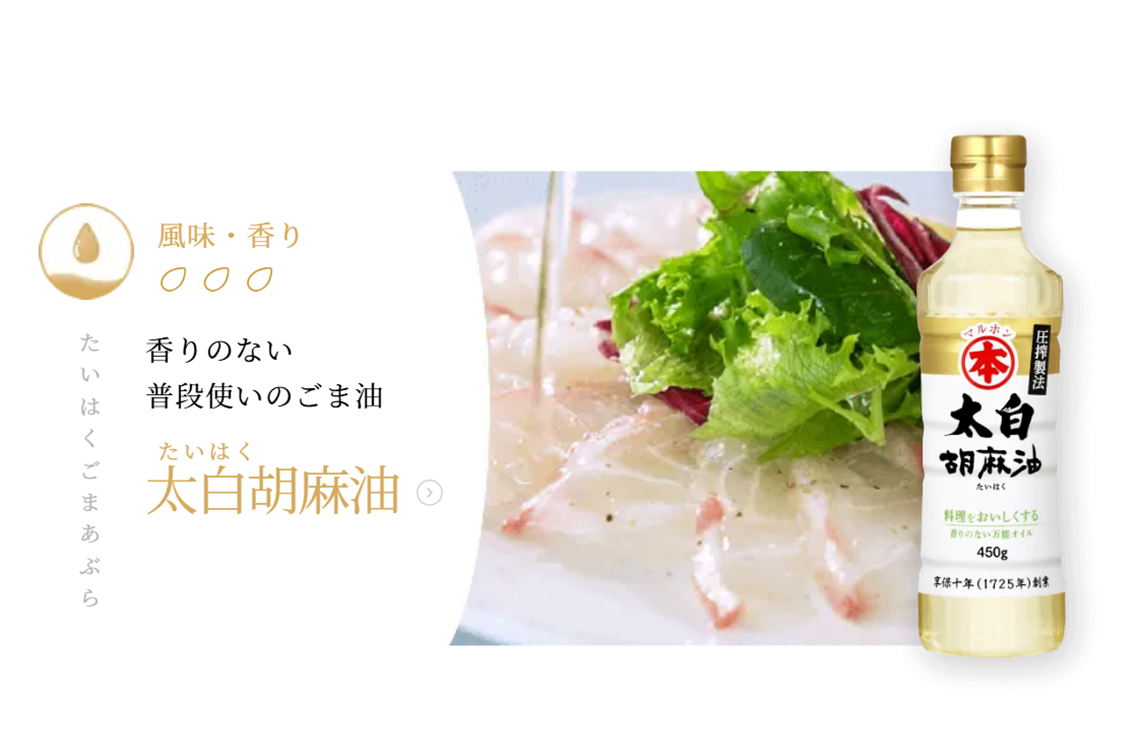 「他よりも秀でている」といった自信のもと、光り輝く金星にちなんで「太白胡麻油」と命名しました。
