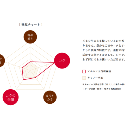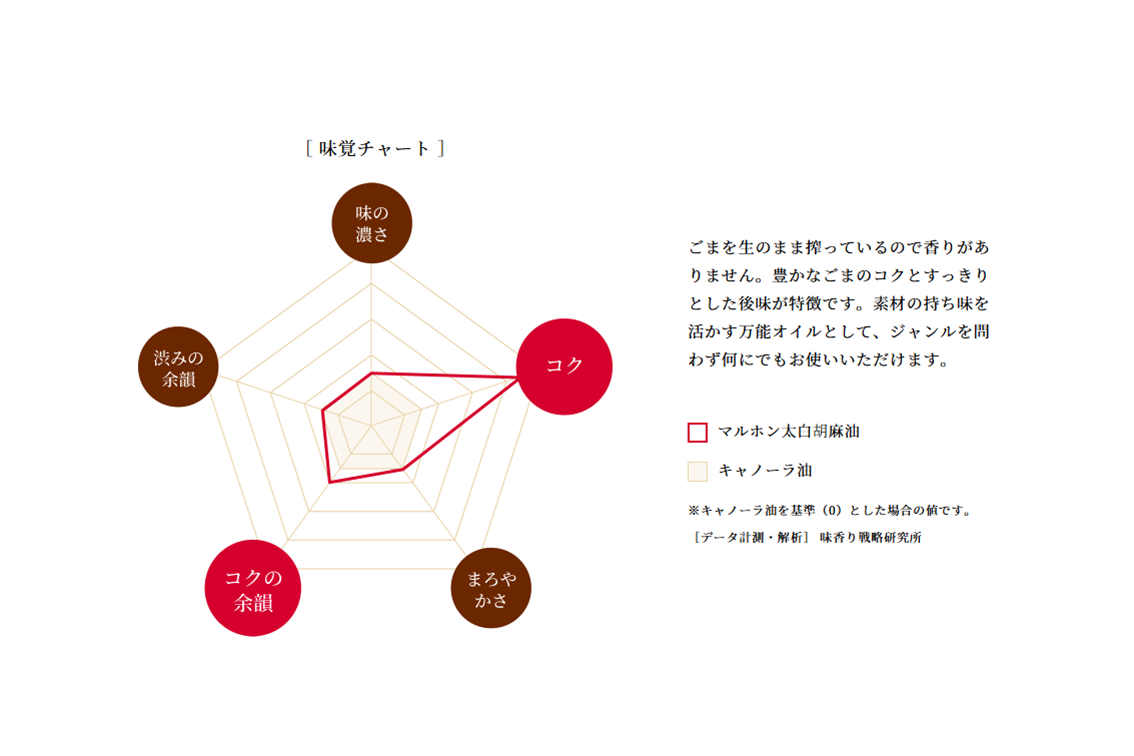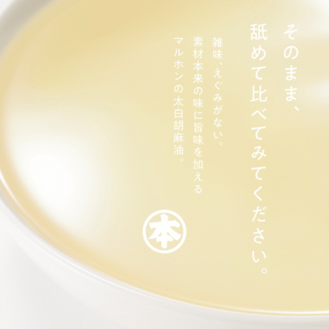 ごまを生のまま搾っているので香りがありません。豊かなごまのコクとすっきりとした後味が特徴です。
