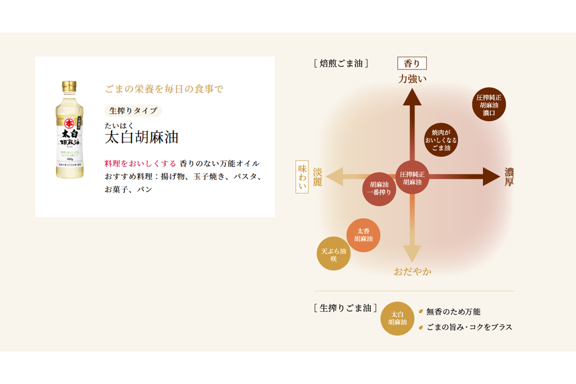 ◆ ごまの栄養を毎日の食事で/生搾りタイプ/太白胡麻油